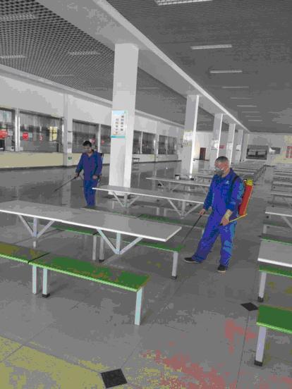 為保障員工復工復產安全,公司提前采購了醫用防護口罩、紅外線體溫檢測儀、84消毒液以及噴霧器、洗手液、75%度酒精、小噴壺、防疫廢棄口罩收集桶和專用塑料袋等21個品種足量防疫物資。3月12日,復工前夕,三環工業園消殺清潔工作全面展開。在生產車間、在辦公樓內、在廠區門口和各條道路上、在配套物資卸貨區、在職工食堂……都有專門消毒人員全副武裝開展消殺工作,全覆蓋不留死角,確保職工復工返崗后有一個安全放心的工作環境。